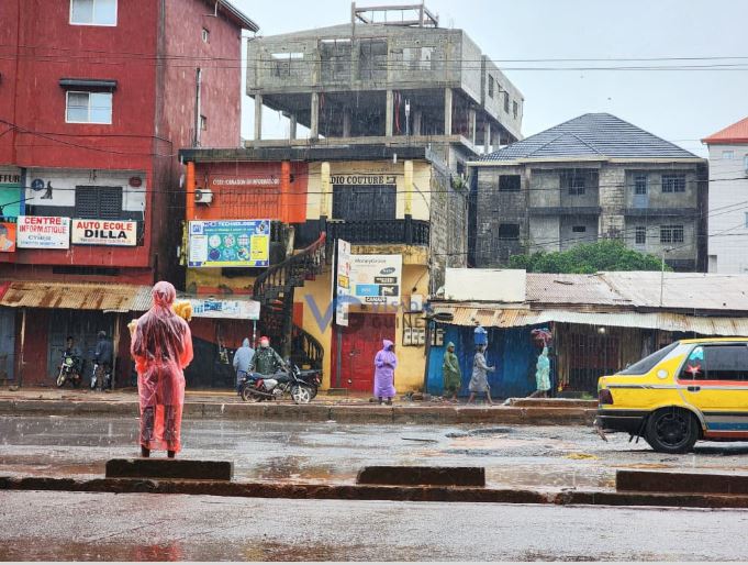 CONAKRY – La pluie tambourine sur les tôles et s’écoule en rigoles boueuses le long de la chaussée. Mais ce vendredi 5 septembre 2025, ce n’est pas seulement le ciel qui assombrit la capitale guinéenne. Sur l’axe Cimenterie–Sonfonia–Wanindara, les rideaux métalliques baissés des boutiques forment un paysage uniforme, comme une succession de murs clos, plongeant cette artère habituellement vibrante dans un silence pesant.