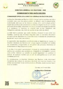 La DGE précise cependant que ce communiqué ne provient pas d’une structure habilitée, dénonçant une initiative qui, selon elle, constitue une intrusion dans un domaine strictement encadré par le Code électoral guinéen.